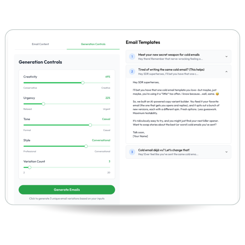 Our fancy-dancy AI handles the hard stuff, like automatically rotating sending accounts and building trust in your network, so you steer clear of spam filters and dead ends.